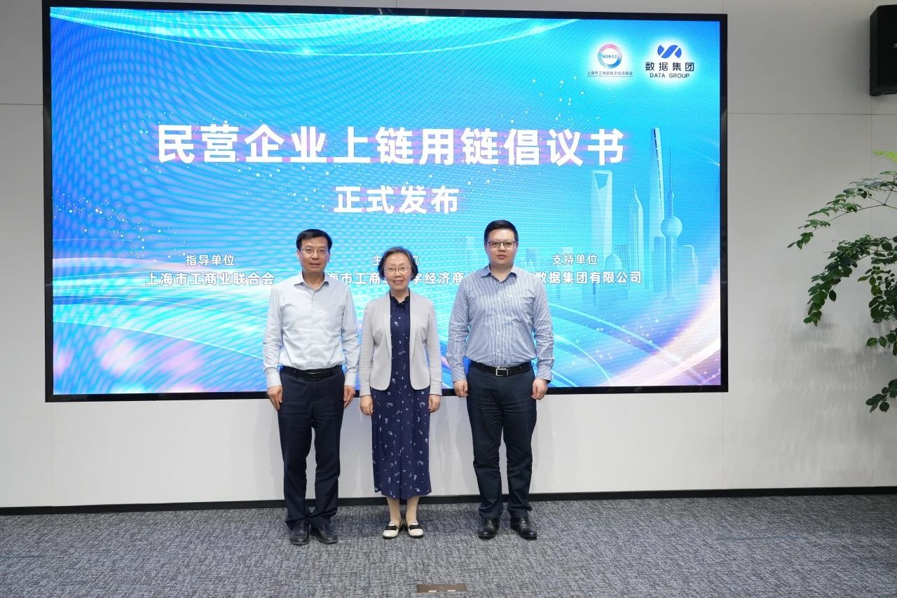 5月29日下午,为进一步把握数字经济趋势,探索以数字技术、数据要素及数据治理等赋能新质生产力发展的有效路径,由上海市工商业联合会指导、上海数据集团有限公司支持、上海市工商联数字经济商会主办的“共话新要素,共谋新发展——上海数字经济沙龙”活动在上海数据集团圆满举行。上海市委统战部副部长、市工商联党组书记王霄汉,上海数据集团党委副书记、总裁朱宗尧,上海市总商会副会长、市工商联数字经济商会会长、东方财富董事长其实出席活动并致辞。上海市工商联党组成员、副主席杨茜,上海数据集团副总裁李小山,市工商联数字经济商会秘书长陈凯共同发布了《民营企业上链用链倡议书》。
