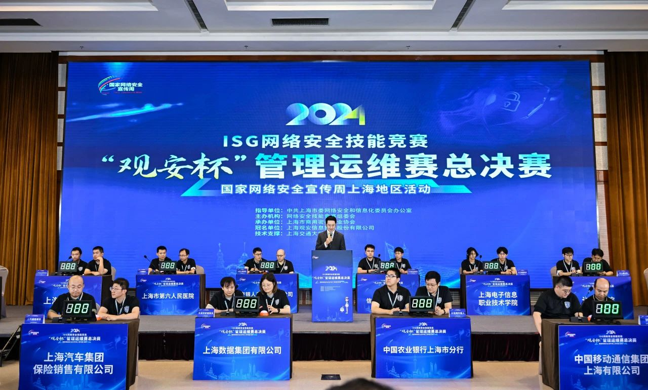 近日,由中共上海市委网络安全和信息化委员会办公室指导,网络安全技能竞赛组委会主办、上海市商用密码行业协会承办的2024年ISG网络安全技能竞赛“观安杯”管理运维赛顺利举办。上海数据集团有限公司积极组队参加竞赛,以分组第一名的成绩入围总决赛,并经过激烈角逐,荣获总决赛一等奖、国资行业组别一等奖。