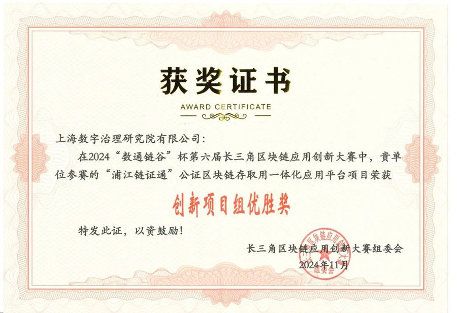 上海大数据股份下属上海数字治理研究院在第六届长三角区块链应用创新大赛荣获佳绩