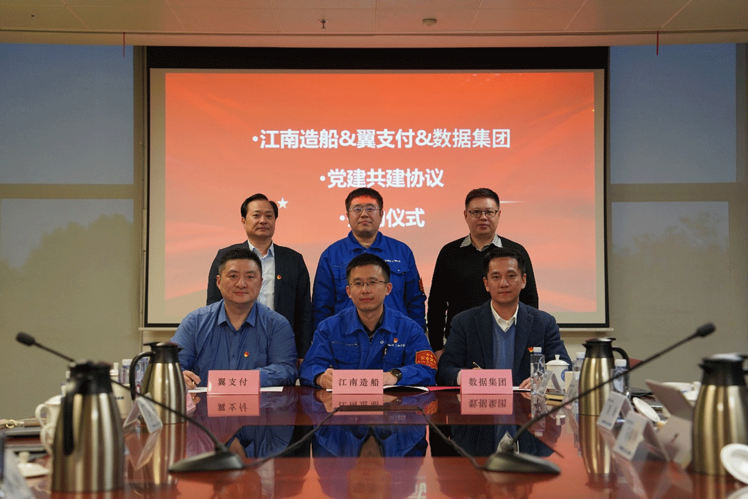 在随后的主题交流环节中,浦江数链和数链网络联合党支部,与中国电信天翼电子商务有限公司上海科技创新党总支、中共江南造船(集团)有限责任公司委员会江南研究院党委信息技术党支部围绕“数据安全和区块链应用”这一主题展开了热烈讨论。大家一致认为,随着数字化时代的到来,数据安全已成为企业发展不可或缺的重要组成部分,而区块链作为新型数字基础设施也将发挥巨大作用。在上海数据集团李小山、江南造船孙新明、翼支付陈义文三位领导的见证下,三位支部书记共同签署党建共建协议。